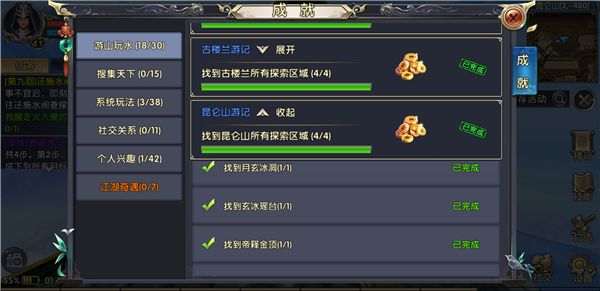 在《卧虎藏龙贰》中有游山玩水这么一个成就,可以说是整个游戏中最麻烦也是最有趣的成就。麻烦是因为该成就由七大部分成就组成,要想完成这七大小成就,你就必须跑遍游戏地图中的每一处角落。有趣是因为在完成成就的同时你能将游戏中的风景包揽无余。接下来将会向大家介绍游山玩水成就中的昆仑山游记部分如何达成。