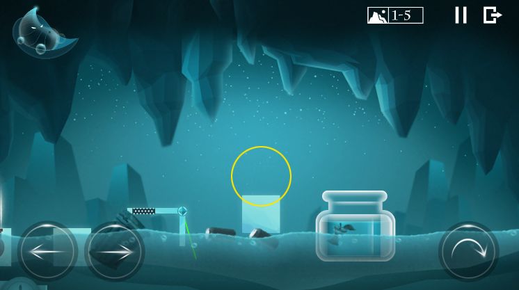 上图圆圈的方块,会上下移动,这里要特别注意,因为水位已经很高了,方块往下移动时,会完全浸没在水里,所以水珠人不要在方块往下移动时站在方块上。正确方法是,方块往上移动越过水位时,水珠人马上跳上去,在方块往下移之前跳入漂流瓶。