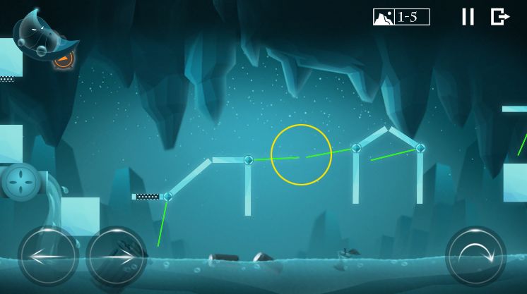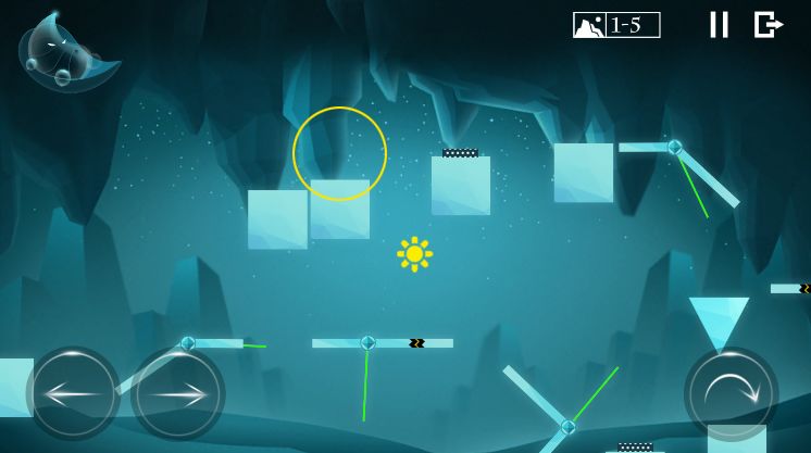 游戏开始,水珠人看似没有路可走,其实跳到上图圈圈的位置就可以,这针会断开的,水珠人会掉到方块上,这时要留心前面方块上的黑色海绵,它附在方块上方的时候,水珠人不要跳上去,这样会被吸收掉,海绵退到方块里面时,方块是安全的,水珠人可以大胆通过。上图右上方,也附着一块海绵,水珠人要特别小心。