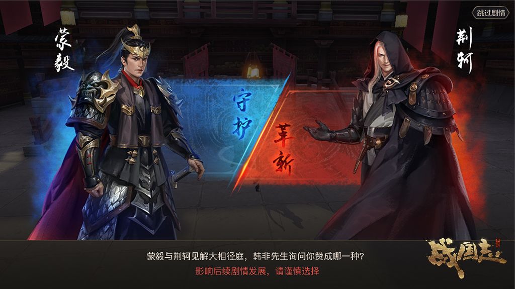 最后,主张守护派的蒙毅与主张革新派的荆轲观点大相径庭,各位将军需要在此做出重大抉择。