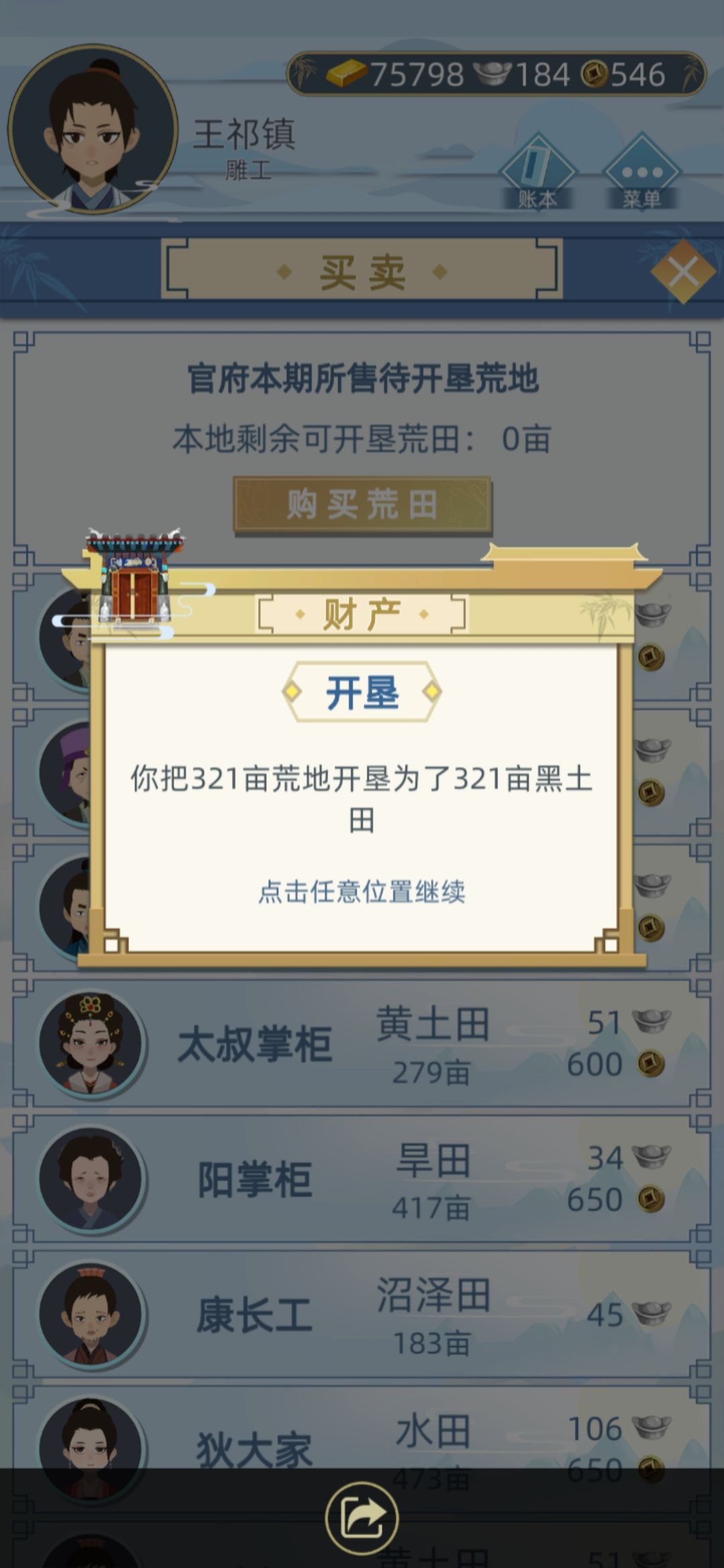 不用卖田BUG,也能提高土地上限,就是开垦政府的荒地。下图多出来的都是开荒出来的。
