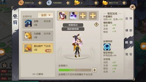 有趣的是,每一个坐骑都可以统御多个宠物,这下顽皮的仙兽们一定会更听话啦。坐骑与仙兽的力量加持到一起,所有属性全部上升!驾驭的等级越高,属性加成值也越高,玩家大大们可以通过与宠物一起战斗或者使用材料进行升级。