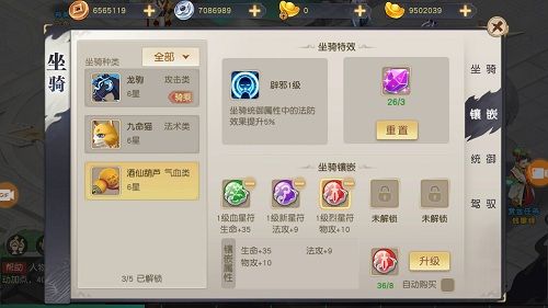 除此之外,坐骑的养成还给了玩家极大的自由度。玩家可以激活每只坐骑的特效属性,通过镶嵌符石可以增加物攻、法攻等强力属性,每个属性都可以继续升级让坐骑变得更厉害!如果对属性不满意?那就重置继续改改改,直到满意为止。