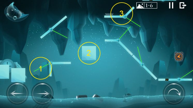 这没有太多想说的,到位置1获取大气泡,然后跳到位置2,再寻机跳到位置3,2到3这里要注意一下,因为3是上下移动的,要在低点的时候跳,因为当3移动到最高点的时候,即使有大气泡,水珠人也够不到,会跌落在下方的海绵上。