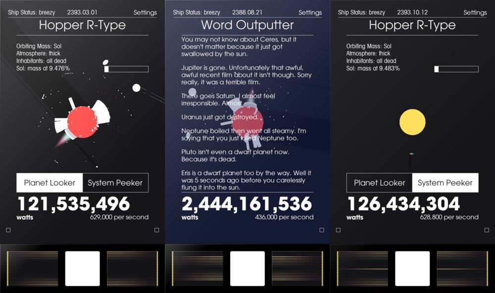 当你通过点击太阳能板——你自己的手机——向行星投掷土豆探针时,当你满怀宏图远志制造巨大的土豆发电站时,当你消耗了足以创造一个银河系的能量开发出土豆良种基因时,你并不孤独。有千千万万从小就拥有科学梦想的人们正在和你一样,在点点点、点点点、点、点、点,拯救宇宙。