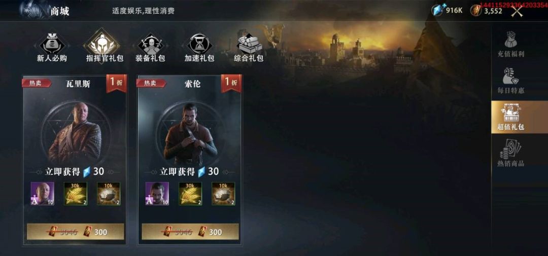 通过此礼包可获取特定指挥官,并附带获得一定粮食、石料等资源。此礼包以1折的价格出售,会不断更新可获取指挥官。而指挥官对领地的战斗发展都起着决定性的作用。