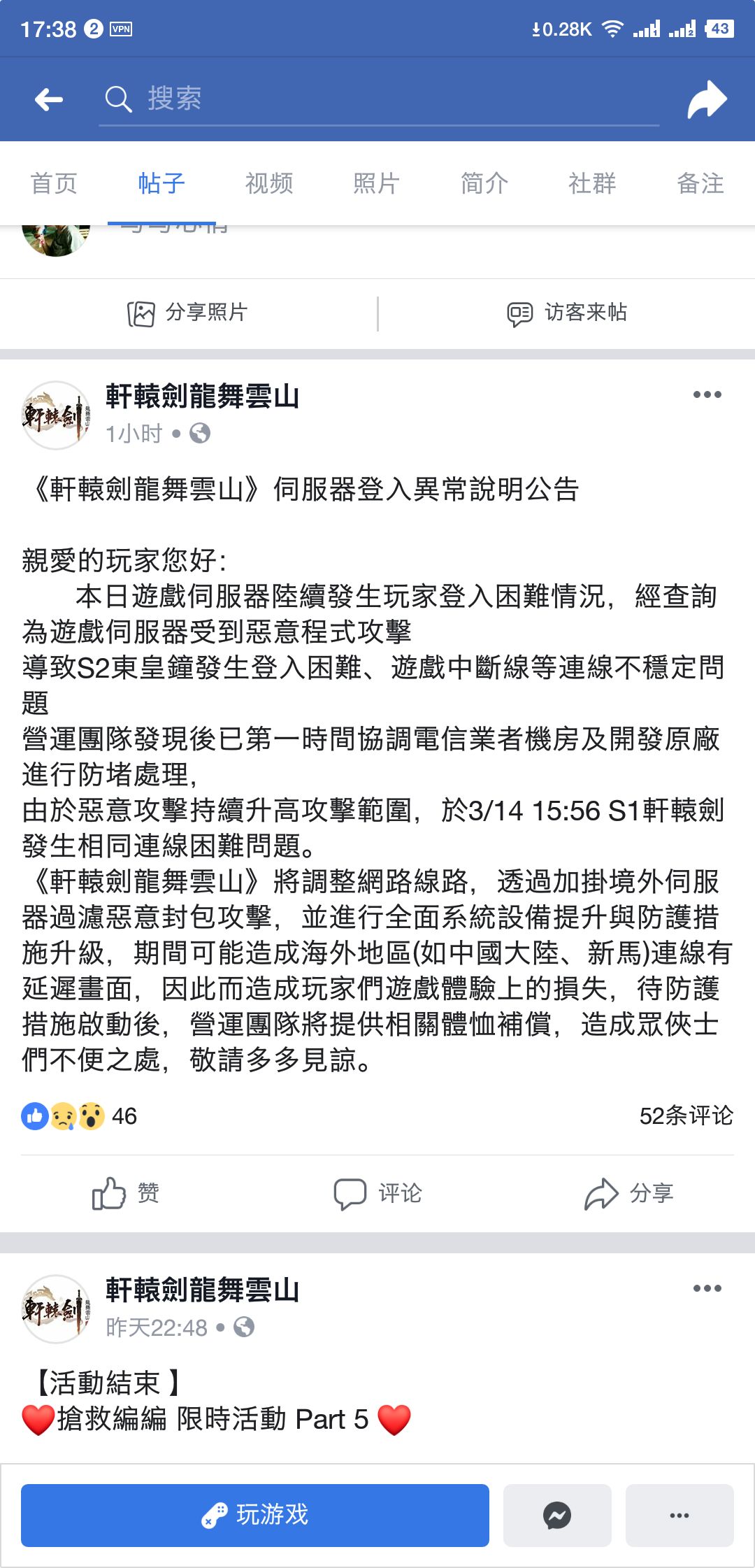 關於今天早上s2服務器崩潰公告