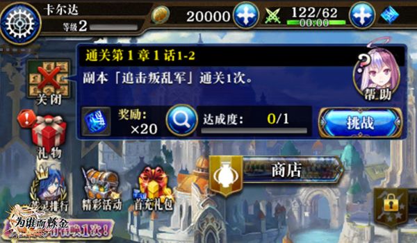1.角色人物等级到20