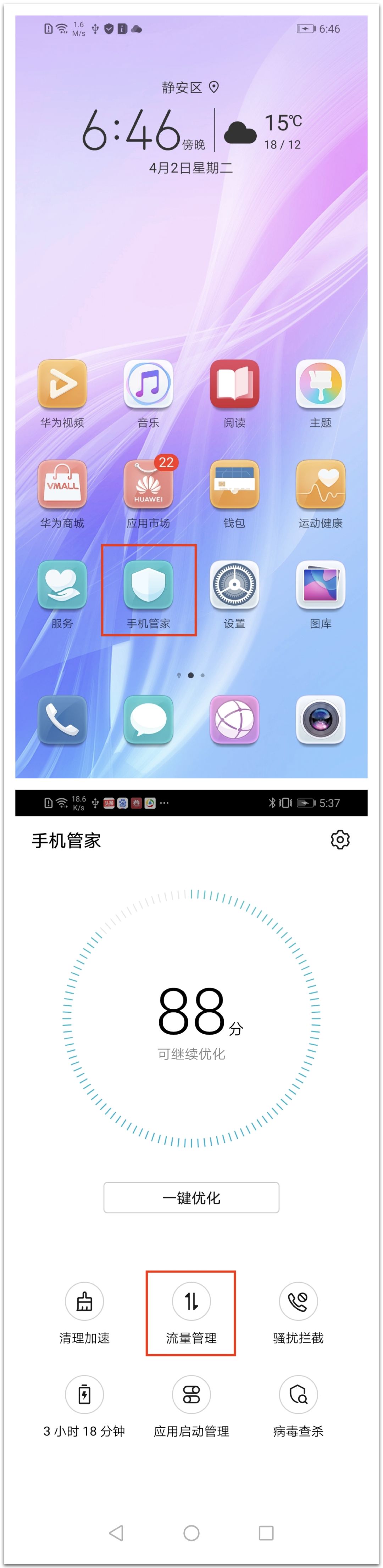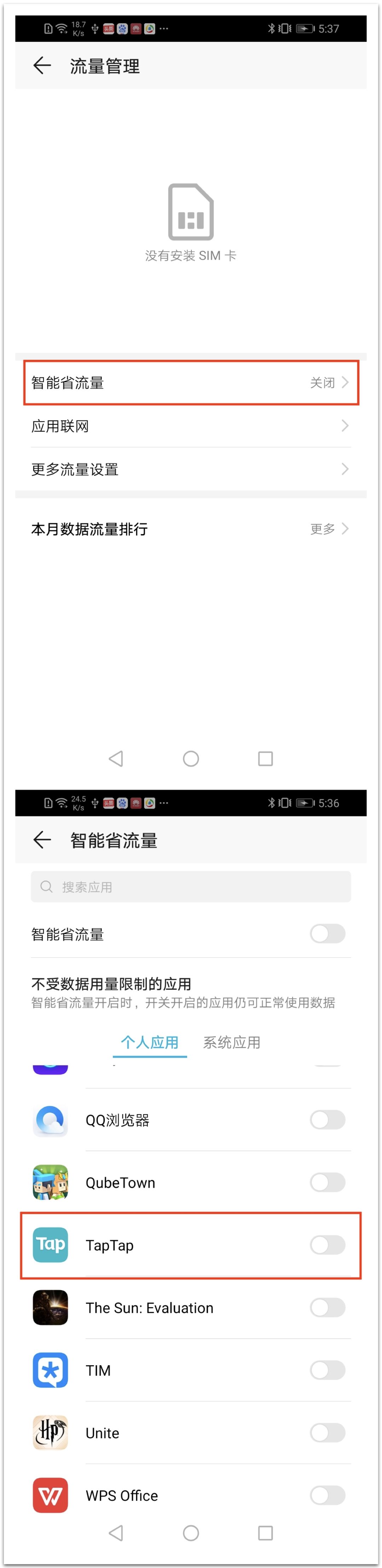 2.流量管理方式:手机管家---->流量管理---->智能省流量---->关闭TapTap后的开关
