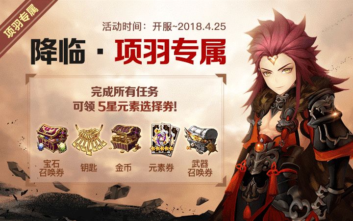 此次国服上线了全新专属的国风英雄,包括诗仙李白霸王项羽等等。长锋所指,四方臣服,捭阖天下,无人可挡,国风英雄项羽破壁降临!在活动期间内,完成项羽专属任务,即可领取对应的奖励,全部完成还可以领取5星元素选择券。