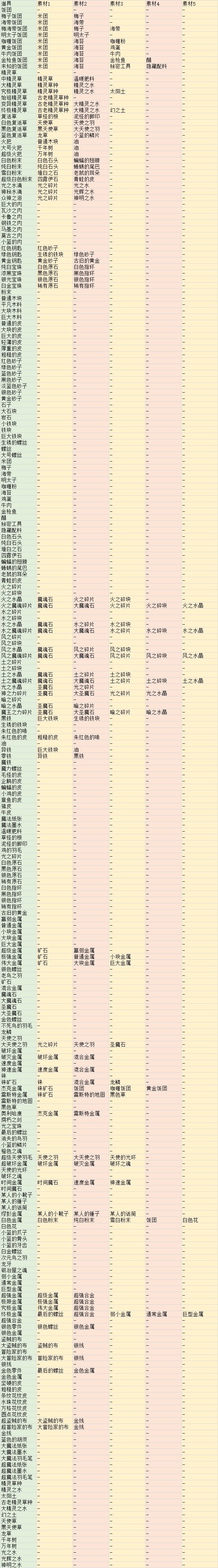完整炼金配方表
