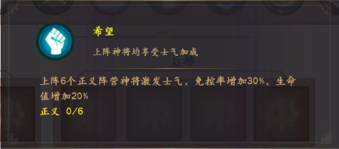 以下是纯色单阵营的光环效果,能看出各个种族的光环加成效果都很高,尤其是正义和邪恶种族。不过小编这里不推荐新手玩家前期使用单阵营,因为前期获取神将的数量有限,培养同阵营的6个神将需要大量同一个种族的神将材料,会比较缺狗粮。(大佬忽略)