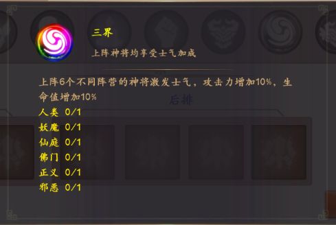 由于游戏内存在多种上阵光环,光环的加成BUFF还不低,玩家在进行阵容搭配的时候,可以根据自己拥有的神将进行搭配,凑够光环效果。