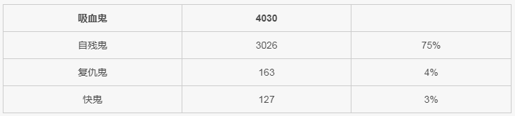 自残鬼依旧是吸血鬼内部最受欢迎的思路,此外复仇鬼和快鬼也有一定使用率。快鬼实际上就是新版本的buff鬼。