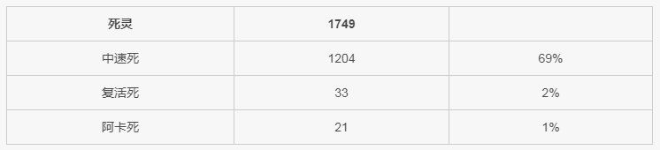死灵的变化依旧不大,中速死还是主流,且中速死在无限的强势已经延续了数个版本,本周可能由于新牌的加入,复活死和阿卡死使用率有了一定的上升。