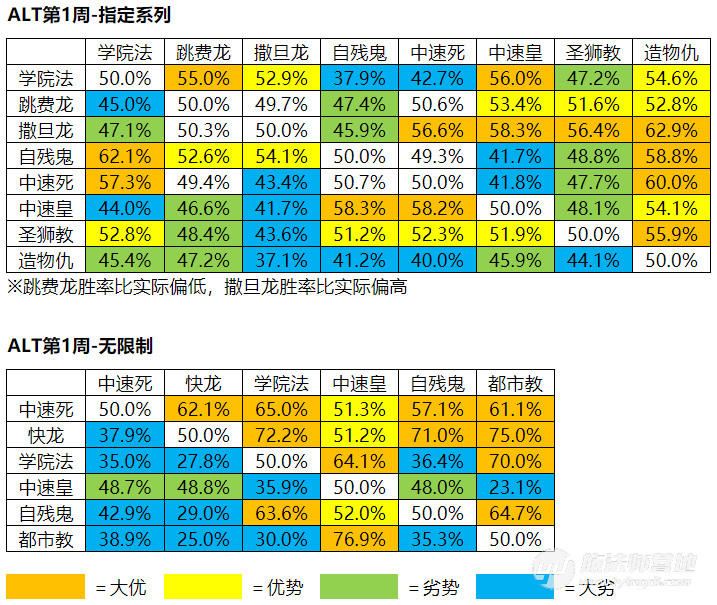 指定M组统计对局数是无限的4.1倍,指定、无限的统计对局数比值大幅提升。与OOT初期自残鬼入主无限不同,ALT对无限影响较小,仅是新撒旦作为新终端取代了一些旧有的老终端,但使用率前二,依旧保持强势的中速死和快龙都是不带新撒旦的。