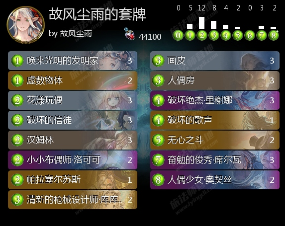 留牌:留发明家、花漾玩偶,有发明家留信徒,无偶像除“发明家+信徒”外全换找偶像。银姐在有偶像和2费的情况下留。