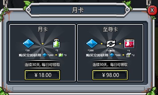特别说明:购买月卡后,额外赠送的道具需要重新进入游戏才可以获得哦~