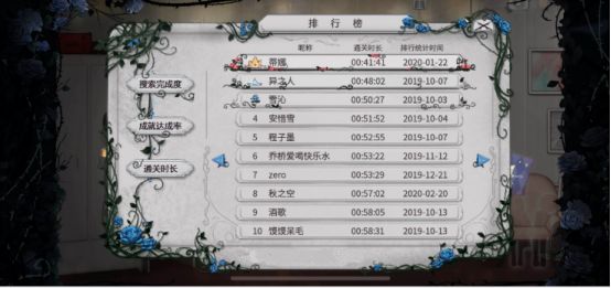 月榜机制更新此次版本更新中,通关时长与探索完成度两个榜单变成了月榜,每月底都会重置w在不断探索主线,揭秘故事之时,大家也可以在馆里自由搜索噢,一不小心就会发现隐藏的彩蛋,登上榜首,成为馆藏大佬!
