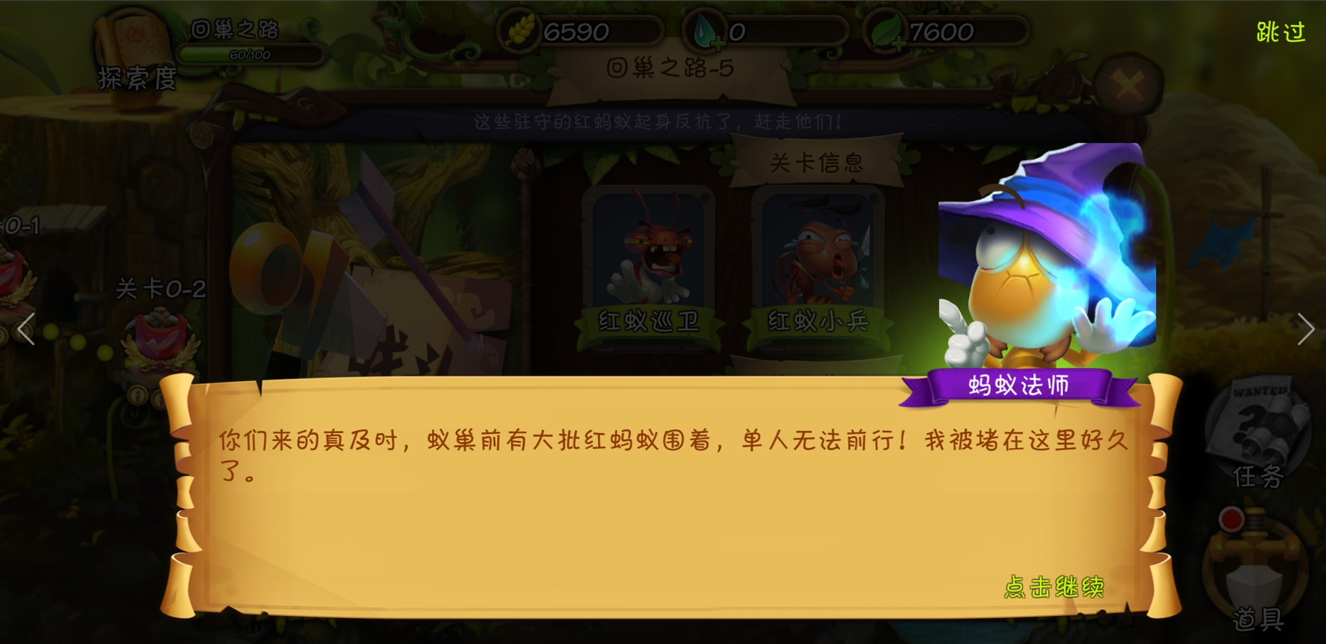 随着小弓箭手加入我们的队伍后,在回巢之路0-5关卡前我们又触发了小法师的剧情对话。