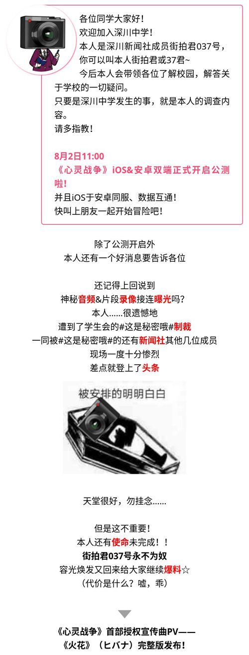 入学·礼一 | 公测启动!《心灵战争》授权宣传曲《火花》PV完整首曝!