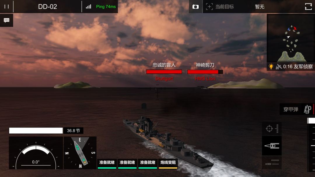 在新版本中,战斗中将引入隐蔽与视野机制,船只视野取决于舰桥高度与舰桥占比,最小为1000米;船只隐蔽取决于船只高度和船只体积,最小为40%。当观察者视野大于观察者与被观察者距离乘以被观察者隐蔽时,观察者方可看见被观察者。当两艘船最高点之间连线中间存在障碍物时,两艘战舰均无法观察到对方。同时,通过小地图您可以了解周边地形、友军及视野内敌军的位置,可以拖动小地图左下角缩放小地图。需要注意的是,友军侦查机,也就是右上角的绿色角标将不受该机制影响。