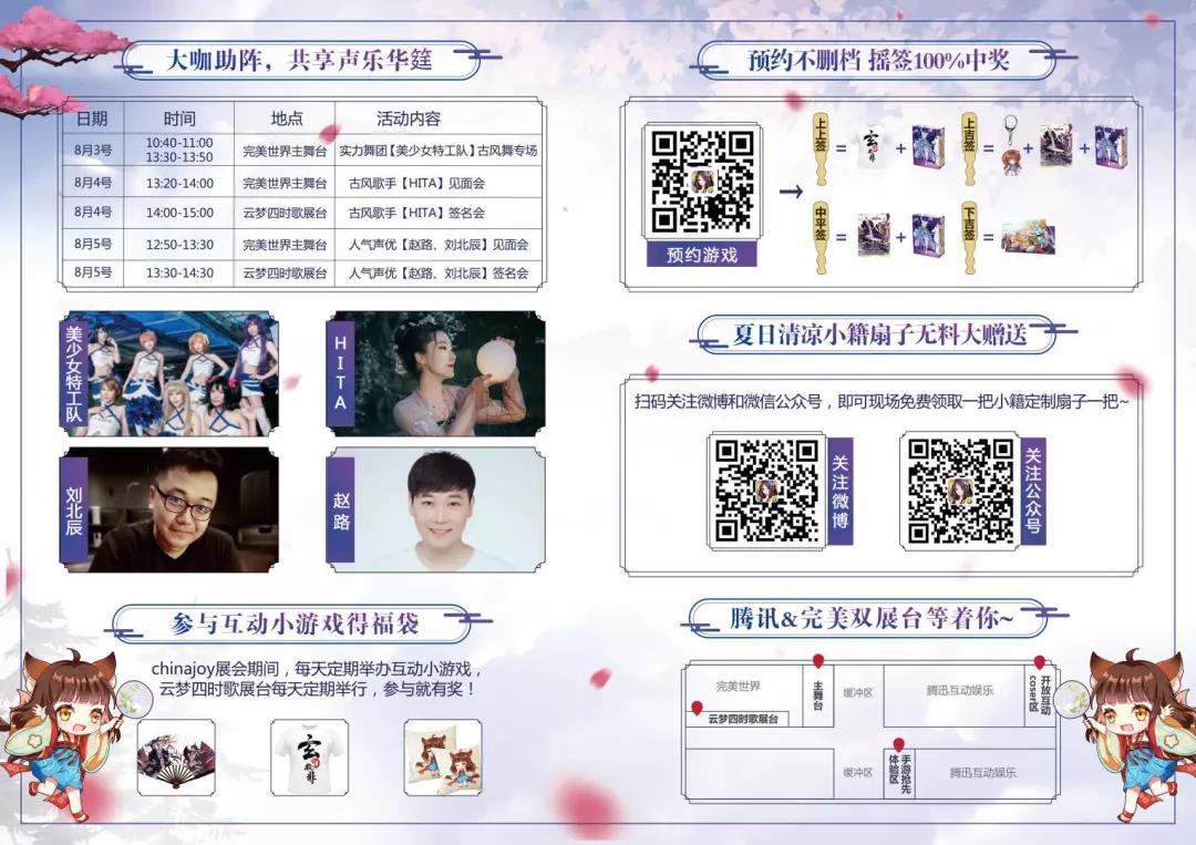 在现场不仅可以扫码关注《云梦四时歌手游》微信公众号和微博,即可获得限定版云梦扇子。
