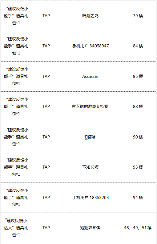 中奖玩家名单:
