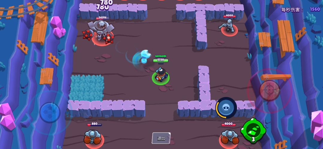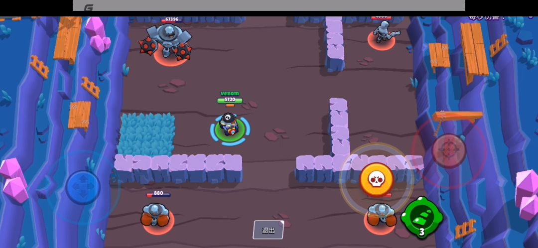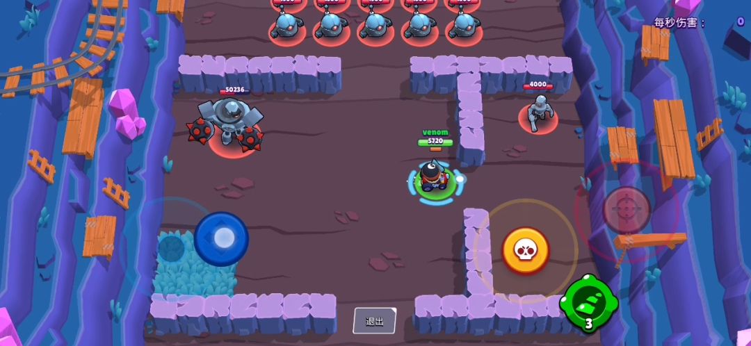 荒野决斗:利用卡尔的特性,十字镐遇到掩体开始收回,所以我们在打箱子的时候尽量贴墙,除非箱子离四面的墙很远,这样打一个箱子最多3秒就可以去其他箱子了。 遇到人不用怕远程消耗,最好是利用攻击极限距离,快速打出两倍伤害,不会只吃到一段,慢慢攒出大招,然后开始贴近大招收掉人头拿到能量块。