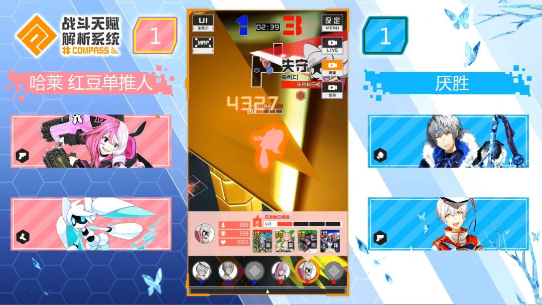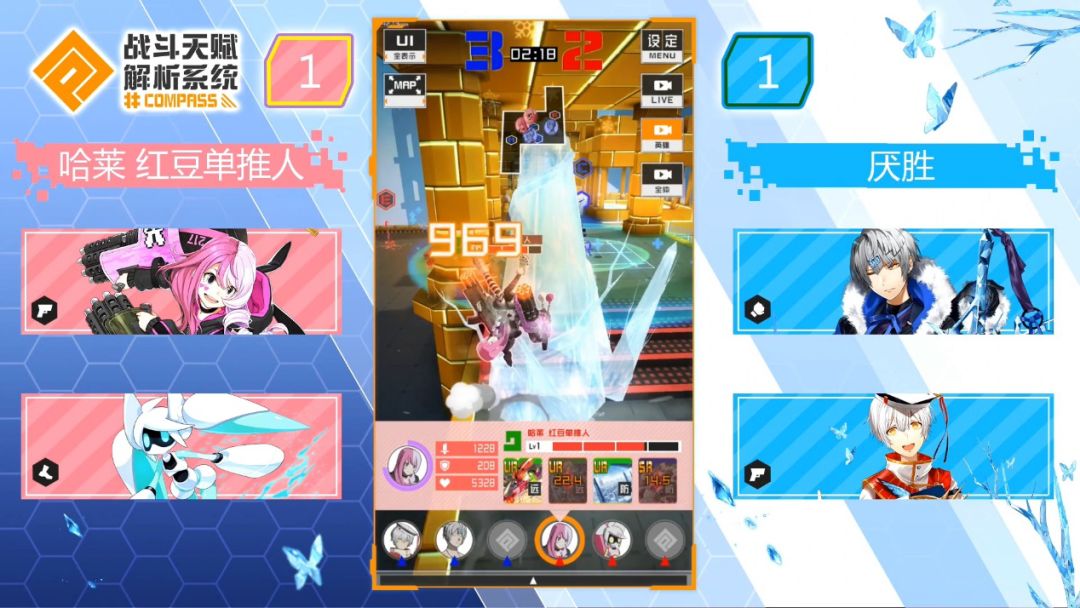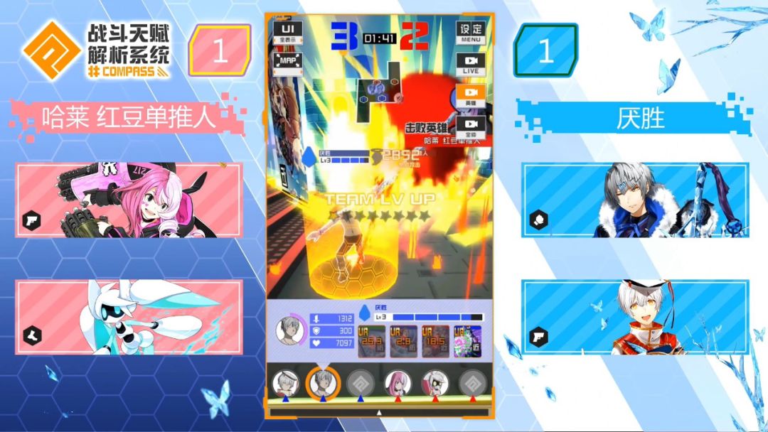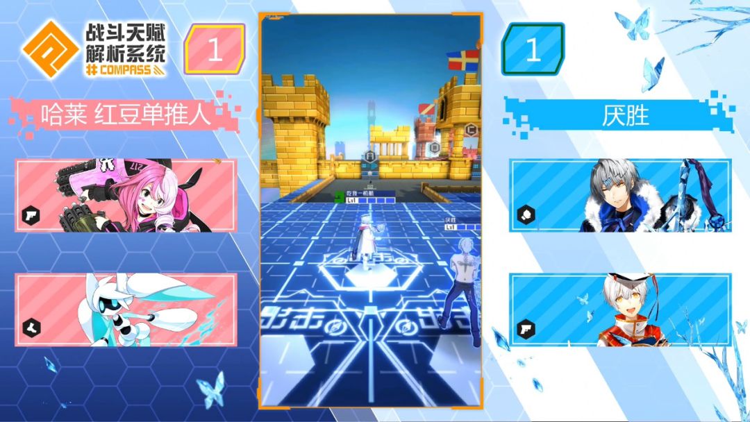 蓝方则是选择了可可和1313是游戏中最灵活的枪职,击破对手和释放必杀都可以回复血量,变为近战模式时还可以增加防御力以应对多段伤害对手。