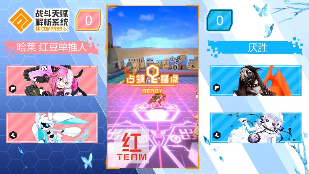 这一局的地图选在了美丽岛度假乐园,这张地图双方副据点都在c据点上方,远程可以在相对安全的副点内使用平a或长按技能对c点施加压力,双方的站位和长按技能的发挥会很大程度影响战局。我们来看双方要如何处理。
