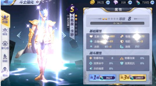 当斗士升级遇到瓶颈时,则需要通过转生提升星级来获得更高的等级上限。每次转生可以提升一个星级,每个斗士最多转生4次,转生可以提高圣斗士的基础属性。