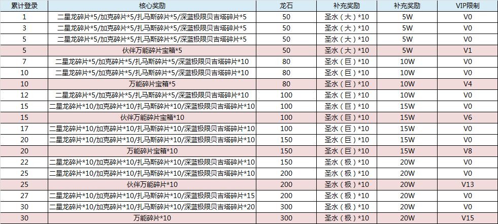 活动规则:每日登录游戏可领取二星龙/加克/扎马斯/深蓝极限贝吉塔碎片和其他丰富奖励。