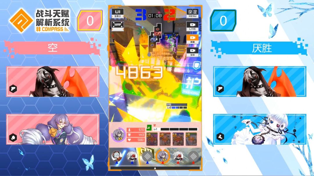 最后20秒蓝队依靠必杀无敌没有给红队任何机会,成功守下据点夺得了胜利。因为开局即使被击破,对手乃保也来不及夺取己方据点,所以蓝队可可开局非常大胆的前往红方主点对抗乃保,并成功击破乃保并夺下对手据点。13也非常快速的做出判断,将自身面对有风险的可可引到前方据点。之后的防守双方打得非常激烈。