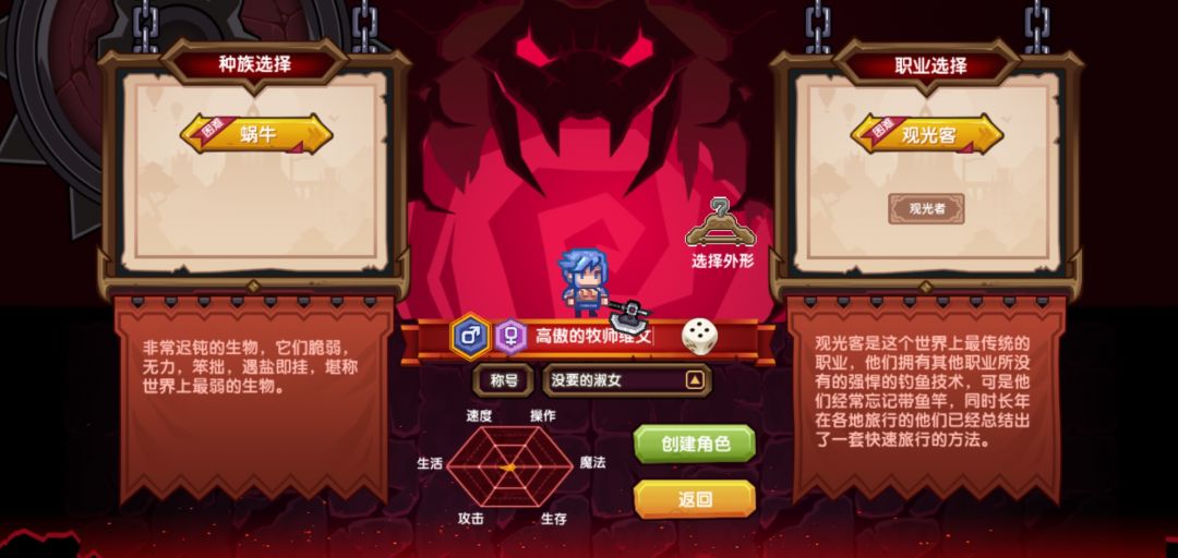 ③ 可以重生,蜗牛的你实际上随时可以放弃这个身份,退出蜗牛,回归到正常模式。也即是说,蜗牛模式完全就像一个附加游戏部分,你永远不缺回归“常态”的机会。唯一要担心的其实是你那时候已经不愿意重生其它种族了。