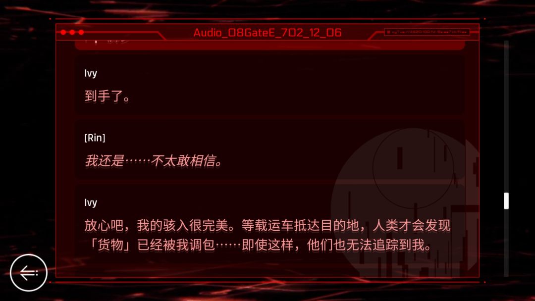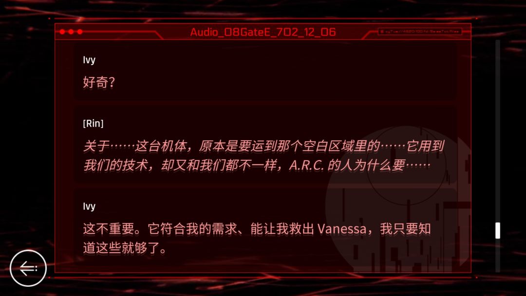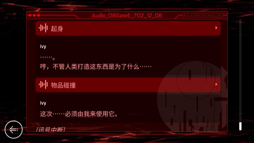 因此,结合上面的种种推测,我是这样猜的:ivy提前计划好了自己的“死亡”,主线剧情那里的“骇入”是ivy为了刺激队员向自己开枪射击而做的。ivy提前把自己的意识转移到一个新机体上,代替自己参战,而自己原本的机体正安全地存放于某个地方。这就成功造成了自己的假死。至于为什么要假死,以及主线最后被吊起来的ivy,还是不清楚原因,静待新的剧情吧。