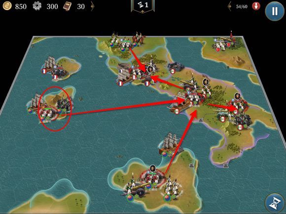 同时,威尼斯下方红圈可以出大学,在威尼斯用爆破打米兰的大要塞,利用好知识这个资源。