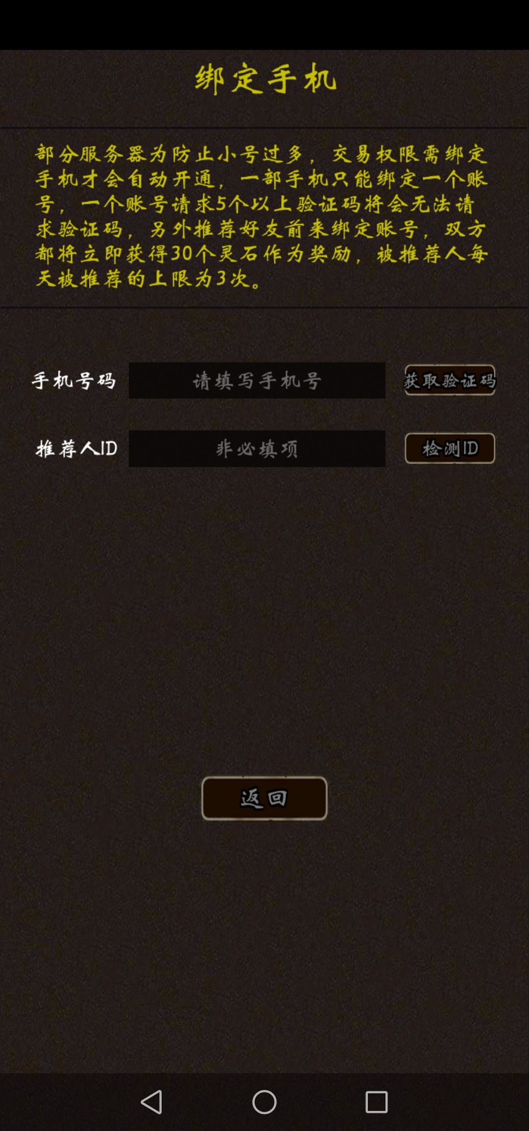 周卡属实白嫖利器2.竞拍功能更新现在四区要绑定手机号才能使用拍卖功能了,以此防备小号过多,另外绑定时填写推荐你绑定的人的ID可以双方都获得30灵石