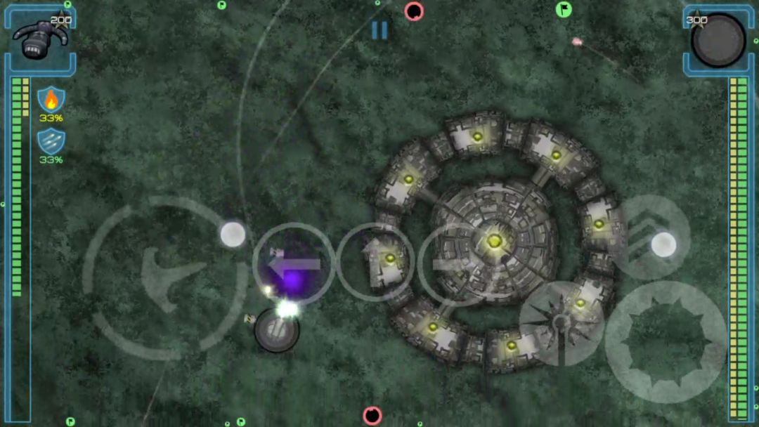 接近堡垒之后不要急着贴脸,先利用高速飘过炮台时释放反炸,(由于速度很快炮台来不及瞄准。)慢慢把炮台磨死。 当然也可以这样↓