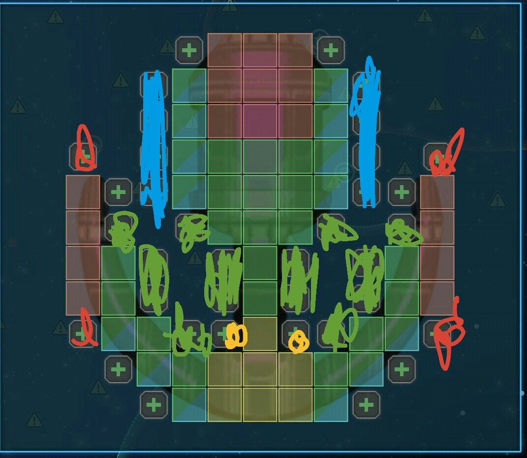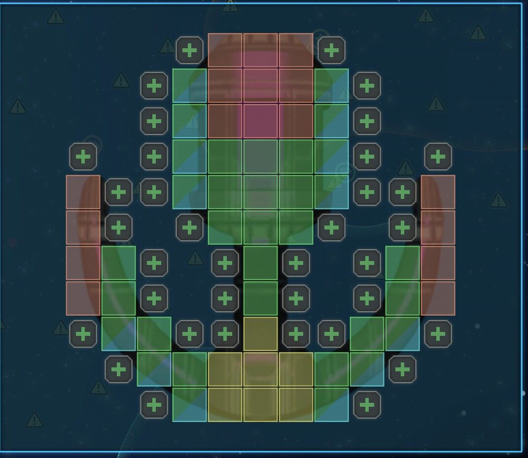 其武器格有S和L两种,可以满足多种武器搭配方式。绿格数量充足(适当的扩格后)。引擎格足以装下较大型引擎。诸如此类等等等等原因,水蛭Ⅱ很快被众多舰长发掘培养为探索专属舰。