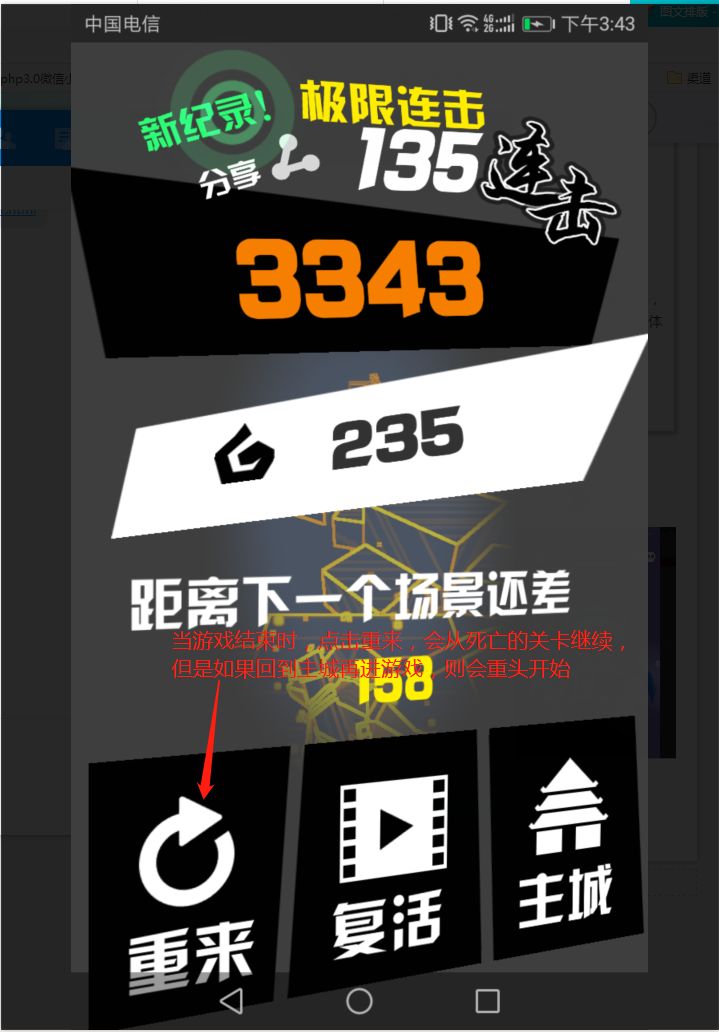 调整重来和回主城再进游戏的关卡;