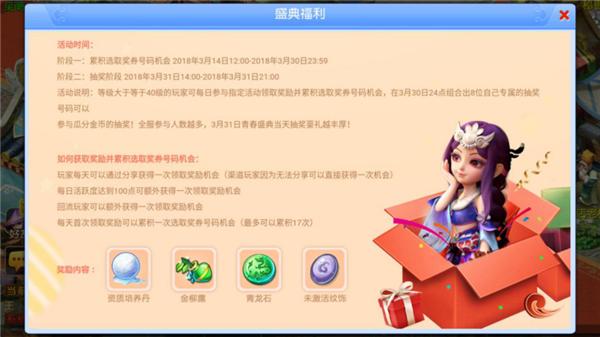 “18亿金币回馈热爱”活动将一直持续到3月30日,在3月31日青春盛典当天进行抽奖。值得一提的是,全服参与人数越多,抽奖豪礼也将越丰厚,奖池金币数最高将达到18亿。因此,活动期间,务必记得每日参与指定活动累积选取奖券号码机会,并在30日24点前组合出自己专属的8位抽奖号码,而如果你想要赢取更多的抽奖礼,可多多号召身旁的玩家小伙伴,通过游戏分享为奖池添砖加瓦!