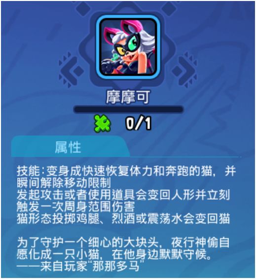 优点:解控,超强的反手能力,配合龙卷风能打出相当爆炸的伤害,甚至在对面没有足够控制跟盾的时候可以打出1v3的操作,很恐怖,五级觉醒之后变猫期间被对手攻击会发生反击并且缴械对手