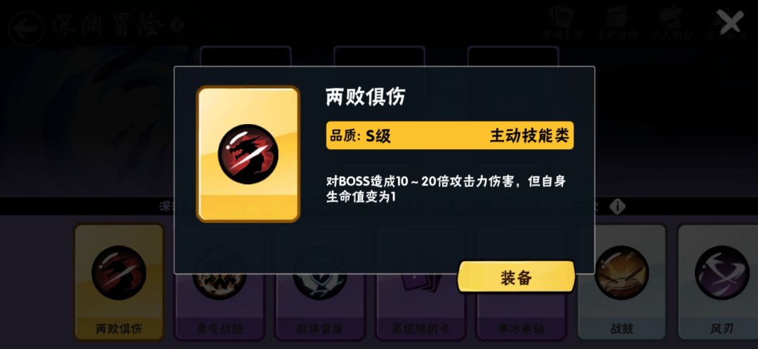 2、两败+血怒+保命卡,这套可以选择看boss板子再放,建议是接力出来有大招和两个武器一起用