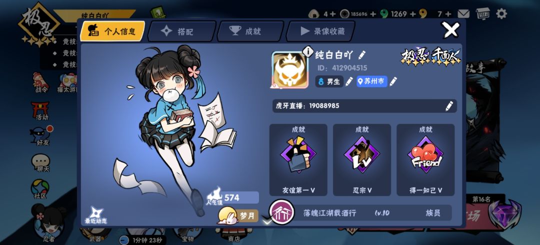 这边我提一下我个人经历以及家族,虎牙房间号:19088985,一颗小妍情(虎牙已退播),现斗鱼直播房间号:I00II040,音暖白白,qq粉丝群:285982356,群主是我,忍三ID:412904515, 载酒 执余幸白,曾经的名字:载酒 纯白之恋,纯白白吖,妍情, ღ盛唐丶冰封等,一直是本人没退游。男,人暖声甜身材好(不渣!!!),认识我的小伙伴看过来,不要问我是哪里人,我是你们的心上人![[嗒啦啦2_优秀]](https://img.tapimg.com/market/images/bbb6da13ee1c31ee1405e261f12f366e.gif)