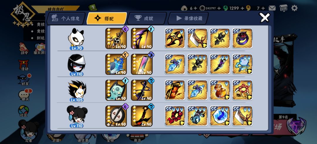 宝物:主忍者※带勾忍宗+小抄,笼手,鬼戒,没有就带别的能加攻击力的(三勾小椒带椒套)开局能放大即可,接力忍者※忍宗+小抄+寒冰必带(以防意外翻车多苟一会)