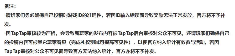 请大家仔细阅读看以下规则哦~(该截图为联动社区活动贴的备注)