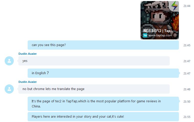 没想到Dustin把这个事放在了心上,并且还靠着chrome的翻译功能,自己动手申请了一个Tap账号,并发了一个帖子想和中国玩家表示谢意,感谢支持.....