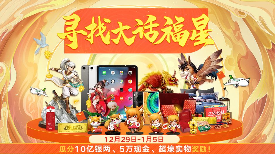 2019年12月29日-2020年1月5日“大话福星”活动火热来袭!在新的一年即将到来之际,鸡驴大神决定悬赏巨额实物奖励寻找集万千宠爱于一身的“大话福星”,将好运和财富分享给更多的大话兄弟!