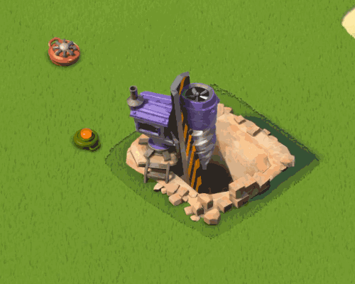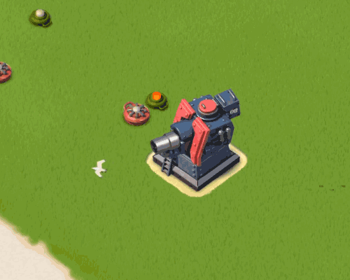 除了狙击塔,胖鼓鼓的巨型加农炮也能身后藏雷,但级别较低时无法盖住身后的地雷。